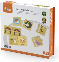 Otroška igrača od 18 mesecev privlači z igro povezovanja nasprotij. V paketu najdete 24 kosov s slikami, iz katerih je mogoče ustvariti 12 parov. Set je izdelan iz kakovostnega lesa, kar zagotavlja njegovo trajnost.<02p>