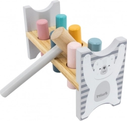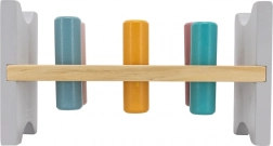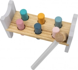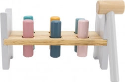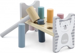 Barvita lesena klopica znamke VIGA je zasnovana tako, da pritegne in razvija koordinacijo otrok. Glavna naloga je zabijanje posameznih zatičev skozi luknje, kar otroke zabava in hkrati krepi njihove motorične sposobnosti.