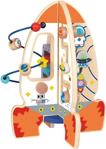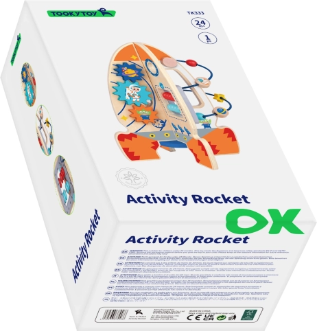 Ta leseni igralni set Tooky Toy je zasnovan za otroke od 3. leta dalje. Izdelan je iz visokokakovostnega lesa in prekrit z ekološkimi ter neškodljivimi barvami. Igrača predvsem razvija fino motoriko in pozornost otrok. Vsaka stran rakete nudi različne aktivnosti, ki spodbujajo domišljijo, logiko, spomin in gibanje.
