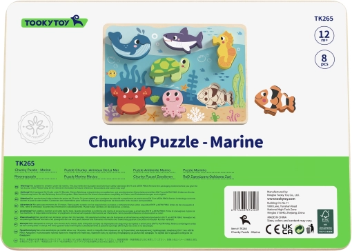 Lesene puzzle Svet morja znamke Tooky Toy so odlična igrača za razvoj vašega otroka. Vsebuje naslednje elemente: