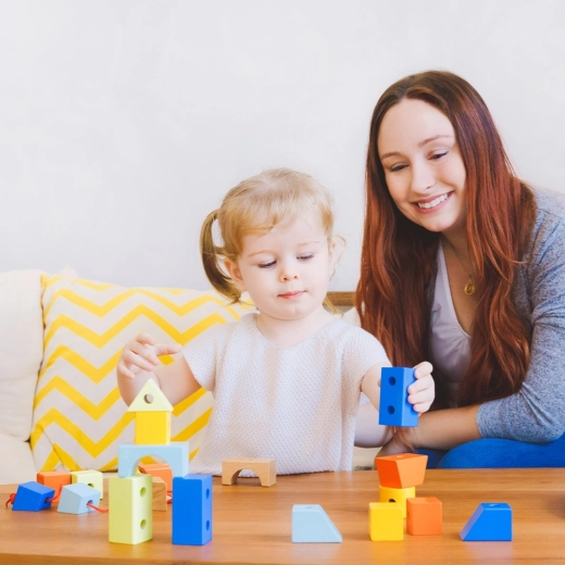 S pomočjo barvitih in oblikovno prepoznavnih kock se otroci učijo razlikovati oblike in barve.