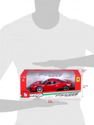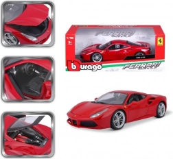 Model Bburago zvesto ujame dinamične linije in detajle vozila Ferrari 488 GTB v elegantni rdeči barvi. Zahvaljujoč kovinski karoseriji, natančnemu laku in realističnim kolesom deluje kot pravi avtomobil v miniaturi. Odpirajoča se vrata, pokrov motorja in zadnji del omogočajo vpogled v dovršeno notranjost in drobovje vozila.