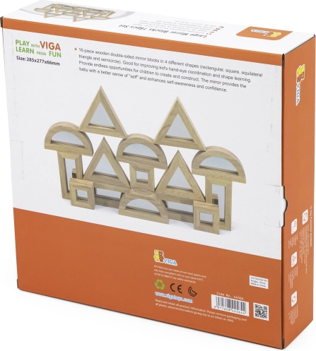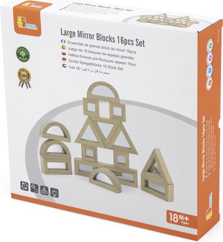 Odkrijte ustvarjalno zabavo s kompletom VIGA lesenih zrcalnih kock (16 kos). Štiri različne oblike z obojestranskimi zrcalnimi ploskvami spodbujajo koordinacijo oko–roka, prepoznavanje oblik in ustvarjalnost. Varna in trpežna izdelava za otroke od 18 mesecev dalje.