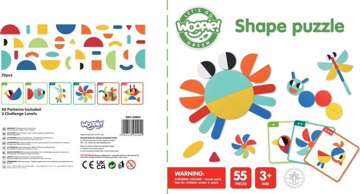 WOOPIE GREEN lesena montessori sestavljanka – 40 vzorcev, 55 delov, certifikat FSC