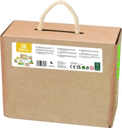 Varnostne lesene komponente znamke Tooky Toy so gladko brušene in barvane z netoksičnimi barvami. Zaradi raznolikih aktivnosti je set odličen za učenje doma, skupno družinsko zabavo in kot darilo za triletnike.