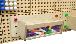 Ohranite delovno površino na STEM tabli pregledno in organizirano. Leseni organizer s prozorno steno omogoča otrokom in odraslim, da hitro vidijo in izberejo potrebne zatiče, vijake in vrvice MASTERKIDZ, ne da bi segali po oddaljenih škatlah. Montira se neposredno na tablo, zato imate vse pomembno vedno na dosegu.