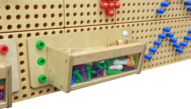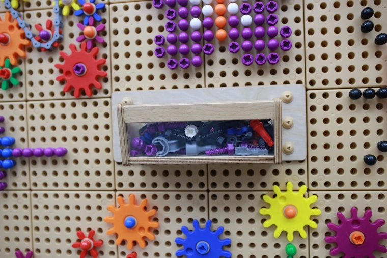 Vsebino organizera vidite na prvi pogled – otroci zlahka najdejo prave zatiče ali vijake, delo na STEM tabli pa je tekoče in zabavno.
