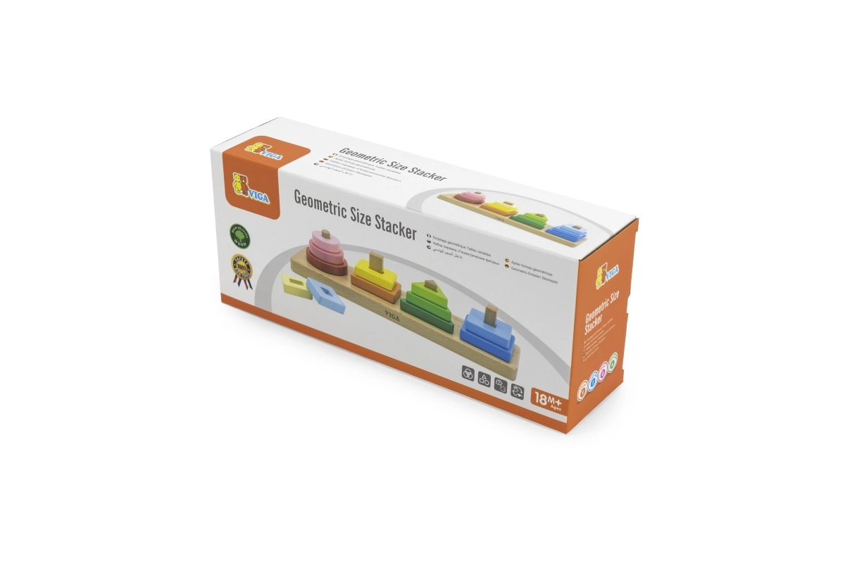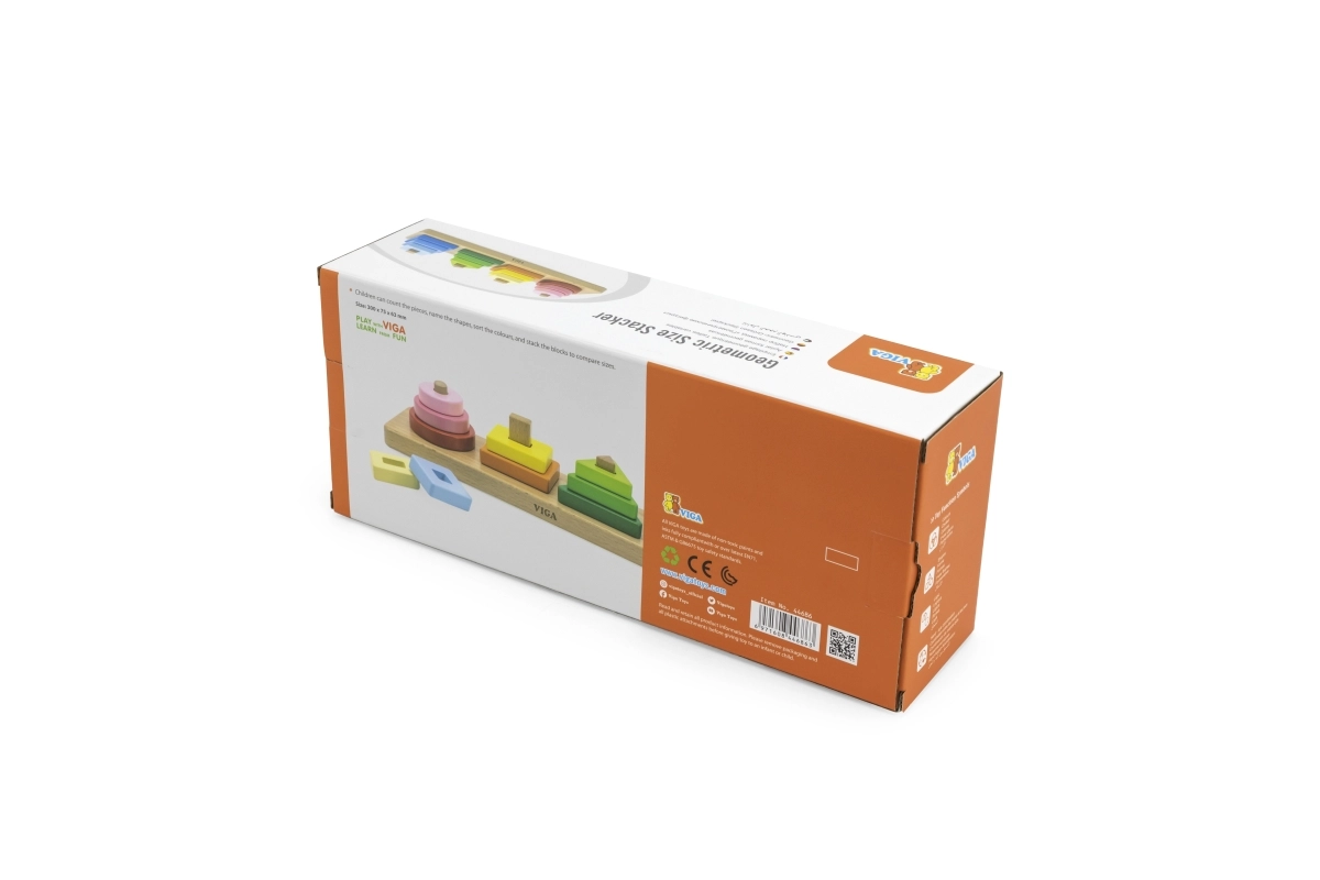 Ta leseni geometrijski sortirnik je odlična izbira za razvoj otrokovih veščin že v zgodnjem obdobju. Zaradi pestrih barv in različnih oblik si otroci urijo logično razmišljanje, razvrščanje in primerjanje velikosti, hkrati pa naravno razvijajo drobno motoriko in potrpežljivost.