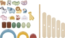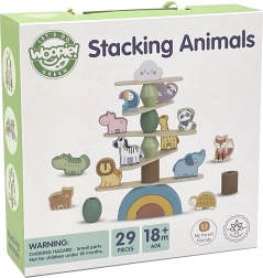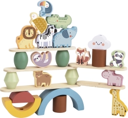 Lesena živalca za zlaganje so idealna igrača za razvoj otroške ustvarjalnosti. Komplet vsebuje 12 prisrčnih lesenih živali in 16 balansirnih elementov, kot so lesena mavrica, kamni, platforme in vesel oblak.