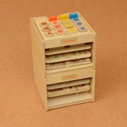 Lesena omarica Masterkidz ponuja praktično in ekološko rešitev za vaše učne table. Zaradi kapacitete do treh tabel velikosti 28 x 28 cm je idealna za organizacijo manjših zbirk. Na vrh omarice lahko postavite dodatno tablo, in če potrebujete večjo kapaciteto, lahko preprosto dodate drugo omarico na vrh.