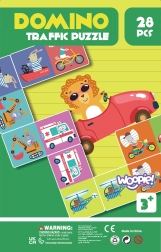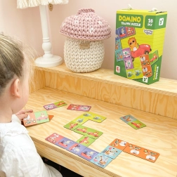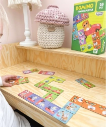 Izdelek vsebuje 28 dominovih kart z ilustracijami živali, ki jih je treba pravilno povezati v pare.