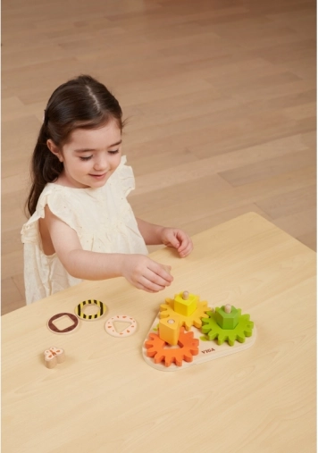 Leseni motorični sortirnik z zobniki znamke Viga je idealna igrača za otroke, ki združuje zabavo in učenje. Varna zasnova brez ostrih robov ter barvit videz podpirata razvoj motoričnih veščin in potrpežljivosti pri otrocih.