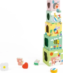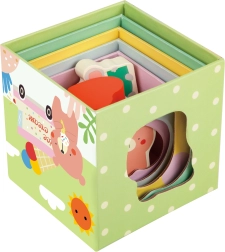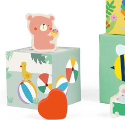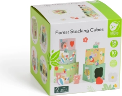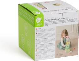 Ta komplet kock z gozdno tematiko predstavlja raznolike elemente, kot so rastline, živali in žuželke, ki jih otroci odkrivajo na različnih straneh kock. Kocke je mogoče zložiti v visok stolp ali uporabiti za razvrščanje oblik, kar razvija otroško motoriko in logično razmišljanje.