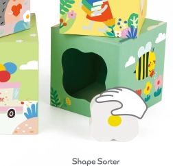 - 10 elementov: Komplet vsebuje 5 kock različnih velikosti in 5 oblik za razvrščanje.