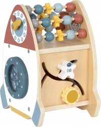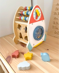 Lesena raketa je večfunkcionalna igrača, ki ponuja šest različnih aktivnosti za razvoj otrokovih spretnosti: