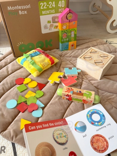 Ta leseni montessori set znamke TOOKY TOY je zasnovan posebej za otroke, stare 22–24 mesecev. S premišljeno kombinacijo aktivnosti razvija čutila (vid, tip, sluh), krepi psihomotorični razvoj in prinaša zabavno učenje skozi igro. Vključen je tudi vodnik za starše z nasveti, kdaj in kako posamezne igrače uvajati.