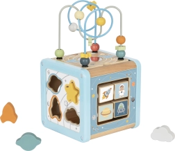 Zgornjo zanko z kroglicami lahko preprosto potisnete v notranjost kocke, zato igračo zlahka pospravite in prenašate. Trdna lesena izvedba in nežne pastelne barve se podajo v vsako otroško sobo in iz kocke naredijo odlično darilo.