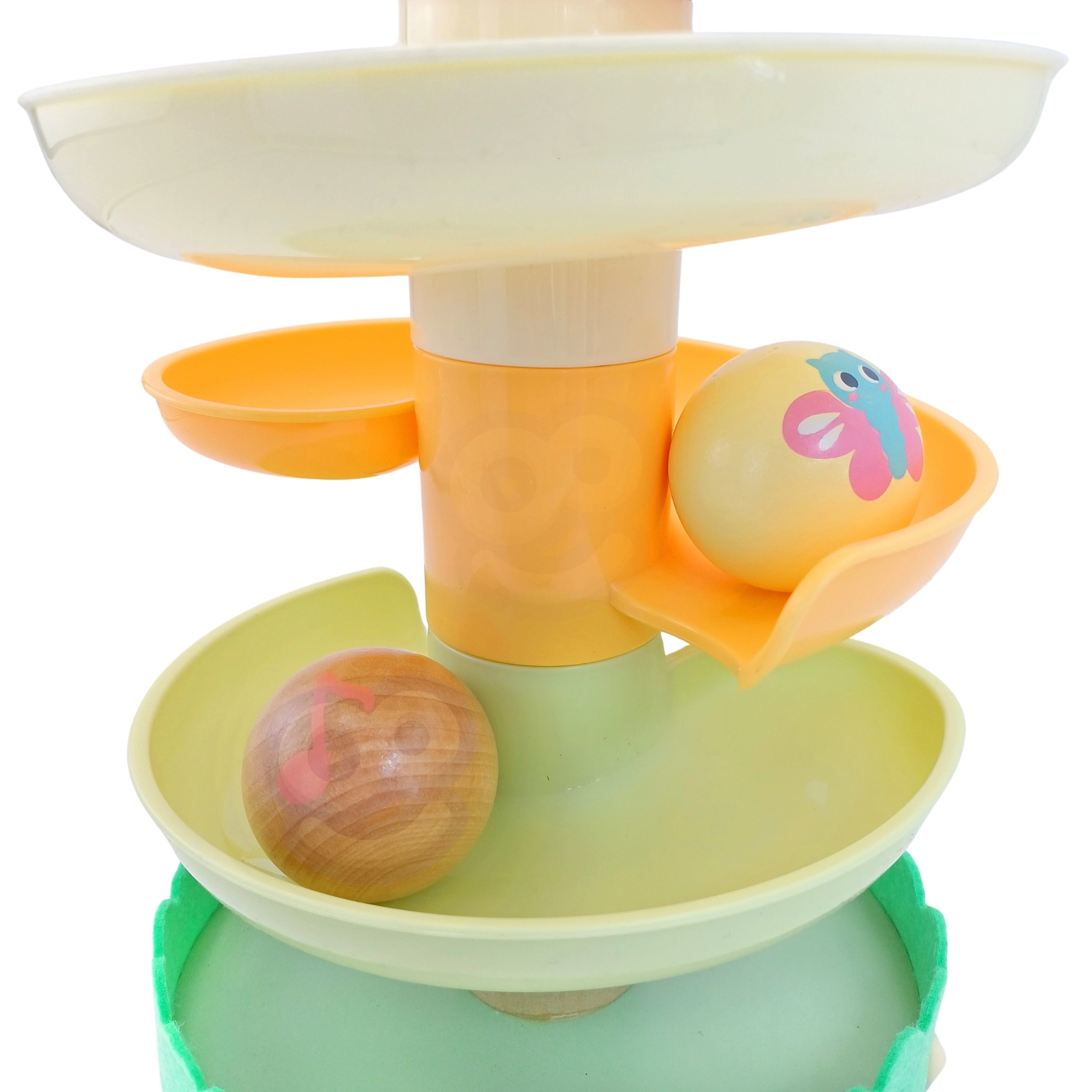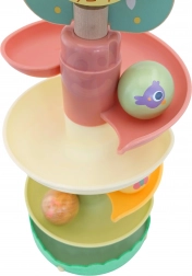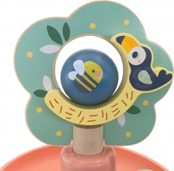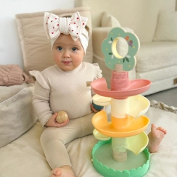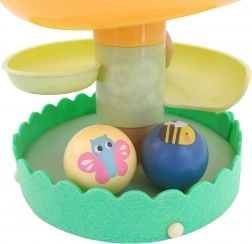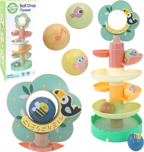 Lesena kroglična steza WOOPIE GREEN v naravni in pastelni izvedbi prinaša otrokom priljubljeno igro vzroka in posledice: vstavi kroglico na vrh in opazuj, kako se vrti po nadstropjih do podstavka. Stabilna konstrukcija, gladki robovi in kroglice s potiski živalic zagotavljajo varno in privlačno igro.