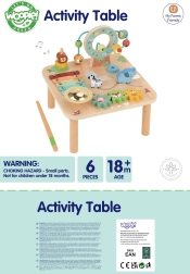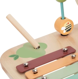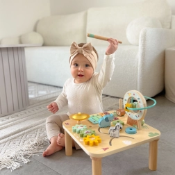 Odkrijte kakovostno leseno activity mizico, ki otroke naravno spodbuja k raziskovanju. Zahvaljujoč raznolikim igralnim conam – od glasbenega ksilofona prek zobnikov do krogličnega labirinta – si otroci urijo koordinacijo, natančnost gibov in razumevanje vzrokov ter posledic. Trdna lesena konstrukcija in nežne pastelne barve se odlično podajo v otroško sobo.