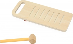 Robustna lesena izdelava z nestrupenimi barvami je varna za najmlajše. Igrača naravno razvija fino motoriko, koordinacijo oko–roka, glasbeno dojemanje in ustvarjalnost ter zabava dolge ure.