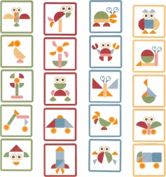 Deset dvostranskih kartic prinaša 20 motivov od preprostih do zahtevnejših – idealno za postopen razvoj spretnosti.