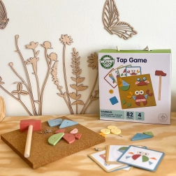 Odkrijte ustvarjalno izobraževalno igro, ki otroke popelje v svet oblik in barv. Lesena zabijanka WOOPIE GREEN omogoča sestavljanje slik po predlogah ali ustvarjanje lastnih kompozicij. Zahvaljujoč varnim, zaobljenim elementom in robustni plutasti plošči je igra zabavna in trpežna.