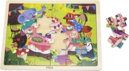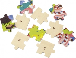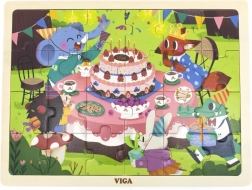 Lesene sestavljanke VIGA z veselimi živalicami okoli rojstnodnevne torte so idealna izbira za prvo večjo sestavljanko. Podlaga z vzorcem nudi stabilno osnovo in otrokom pomaga lažje najti prave kose. Oštevilčenje kosov 1–24 poleg tega prinaša igrivo obliko spoznavanja števil in podpira postopno sestavljanje brez frustracij.
