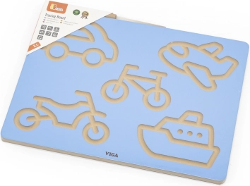 Odkrijte zabavno pot do prvih potez in črk. Lesena tabla VIGA z motivi vozil vodi otroke k tekočim gibom roke, pravilnemu pritisku in smeri poteze. Vadba poteka naravno skozi igro – ponavljajoče se sledenje utorom spodbuja osredotočenost in zanesljivost roke.