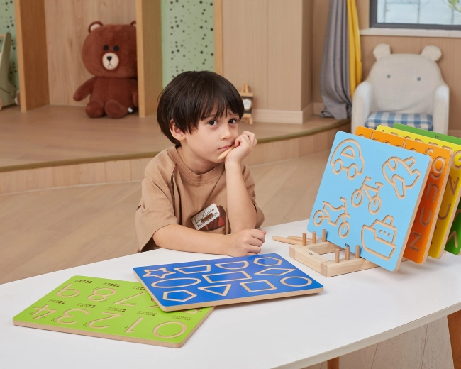 Ergonomsko frezirane linije zagotavljajo tipno povratno informacijo, zato otrok začuti pravilno pot tudi brez predhodnih izkušenj. Kompaktna in trpežna izvedba je primerna za dom, vrtce in otroške kotičke.