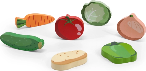 - Vsebina: lesena plošča + 7 koščkov zelenjave