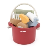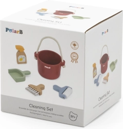 Stilski lesen čistilni komplet POLARB znamke VIGA spremeni vsakodnevno pospravljanje v zabavno igro. Vsebuje vse potrebno za otroško posnemovalno igro – vedro z vrvnim ročajem, smetáček z lopatko, razpršilec in valjček. Igra razvija fino motoriko, samostojnost in občutek za red, pri čemer kakovostna lesena izdelava in pastelne barve zagotavljajo varno in privlačno zabavo.