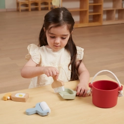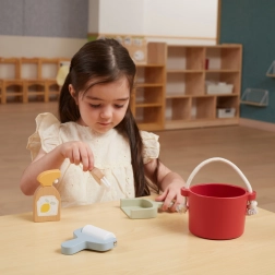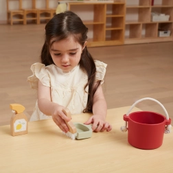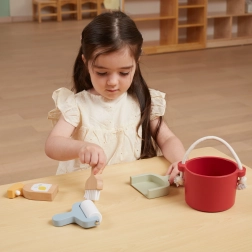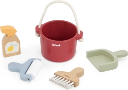 V paketu najdete vedro, smetáček z lopatko, lesen razpršilec in valjček – vse, kar otrok potrebuje za »veliko čiščenje«. Spodbuja domišljijo in igranje vlog.