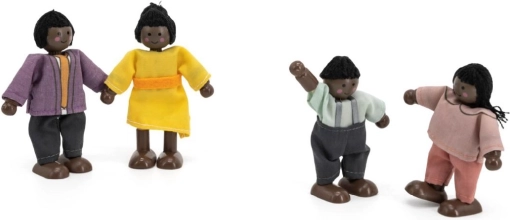 Komplet družinice je idealen za razvoj domišljije, fine motorike in socialnih veščin. Zahvaljujoč premičnim okončinam punčke zlahka posadite, postavite in pozirate – otroci tako naravno ustvarjajo lastne zgodbe. Kakovosten les in mehka tekstilna oblačila dajejo igračam prijeten videz in otip.