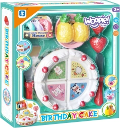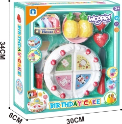 Ljubek rojstnodnevni set znamke Woopie spremeni vsako otroško čajanko v nepozabno zabavo. Lepo okrašena plastična torta za rezanje se zlahka razdeli na porcije, z dodatki, kot so nožek, lopatka in krožniček, pa se otroci preizkusijo v postrežbi kot pravi gostitelji.