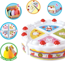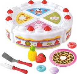 Okroglo torto je mogoče razdeliti na posamezne kose in postreči s pomočjo noža, lopatke in krožničkov – odlično za urjenje fine motorike in deljenja.
