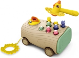 Ena igrača, tri aktivnosti: vlečni voziček za prve korake, zabijanje za urjenje moči in natančnosti ter magnetna igra za spretnost in osredotočenost.