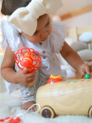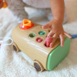 Ta interaktivna igrača raste z otrokom: od prvih korakov kot vlečni voziček z gladkim tekom, preko zabijanja črvičkov z varnim kladivcem, pa do magnetnega lovljenja skritih delčkov s ptičkom z magnetom. Spodbuja osredotočenost, potrpežljivost in razvoj čutnega zaznavanja.