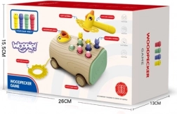 Odkrijte zabavno in vsestransko igračo 3-v-1 znamke WOOPIE, ki spodbuja fino motoriko, koordinacijo oko–roka in ravnotežje. Otroci bodo uživali v vlečnem vozičku s tihimi kolesi, zabijalski igri z varnim kladivcem ter magnetni igri lovljenja črvičkov s simpatičnim »detlom« – lesokljunom. Preprosta pravila, kakovostna izdelava in obilo zabave za male raziskovalce od 18 mesecev naprej.