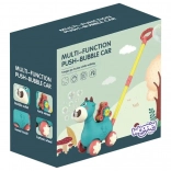 Hojica kravica znamke WOOPIE je idealen pomočnik pri učenju hoje. Otroci lahko pred seboj vodijo svojo najljubšo kravico, ki med vožnjo izpihuje mehurčke kar iz gobčka. Dovolj je, da privijete posodico z raztopino (v pakiranju sta 2 posodici) in zabava se lahko začne. Za vzdušje poskrbijo prijetne melodije, ki jih je mogoče vključiti ali izključiti z gumbom.