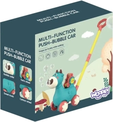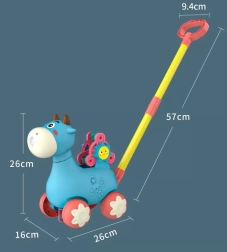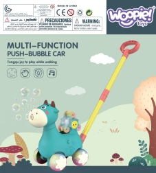 Prisrčna hojica kravica WOOPIE pomaga otrokom samozavestneje stati na nogah in uživati obilo zabave. Med potiskanjem spušča mehurčke iz gobčka, predvaja melodije in ima vrteči se vrtiljak s črkami A, B, C za prve korake v učenju. Zahvaljujoč udobnemu ročaju in stabilni konstrukciji podpira koordinacijo ter fino in grobo motoriko otrok od 3 let naprej.