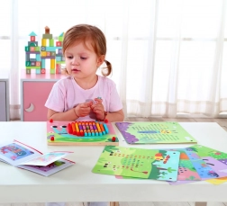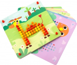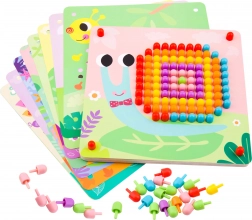 Lesena mozaika z barvnimi klinčki in veselimi slikami prinaša otrokom veliko veselja in spodbuja njihov ustvarjalni razvoj.