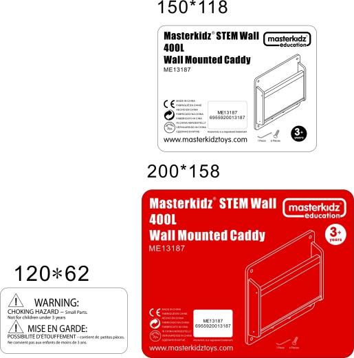Stenska polička MASTERKIDZ je zasnovana posebej za sistem STEM Wall. Montira se s standardnimi vijaki Masterkidz, zato drži čvrsto in je otrok ne more razstaviti z orodjem iz kompleta. Prosojna sprednja plošča preprečuje izpadanje vsebine in hkrati omogoča enostaven pregled nad tem, kaj je v notranjosti.