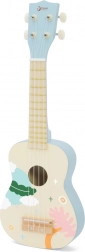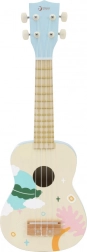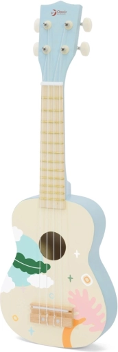 To modro leseno ukulele odlično posnema pravi instrument in je idealno za prve korake v svet glasbe. Otroci osvojijo osnovne akorde in ritem, odigrajo svoj prvi domači koncert ter pri tem razvijajo občutek za glasbo in samoizražanje. Površina je lakirana z netoksičnimi barvami, konstrukcija pa je iz trpežnih materialov za dolgo življenjsko dobo.