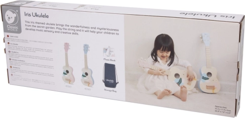 Ukulele ima štiri strune, uglaševalni mehanizem ter gladke, varne robove. Prijetno zadušen zvok je primeren za otroško sobo in za potovanja. Igranje na ukulele spodbuja ustvarjalnost, slušno zaznavo in kognitivne veščine, hkrati pa krepi koordinacijo roka–oko.