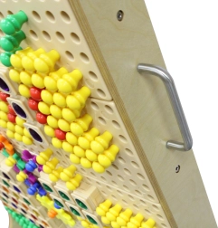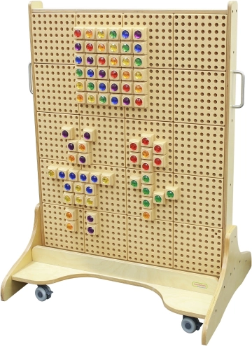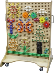 Zahvaljujoč mobilni osnovi s kolesci lahko tablo zlahka premaknete tja, kjer je trenutno potrebna. Je popolnoma združljiva s širokim naborom dodatkov MASTERKIDZ za STEM table (zatiči, “kristali”, vijaki, zobniki, cevi, črke in številke itd.), zato lahko učenje in igro sproti nadgrajujete.