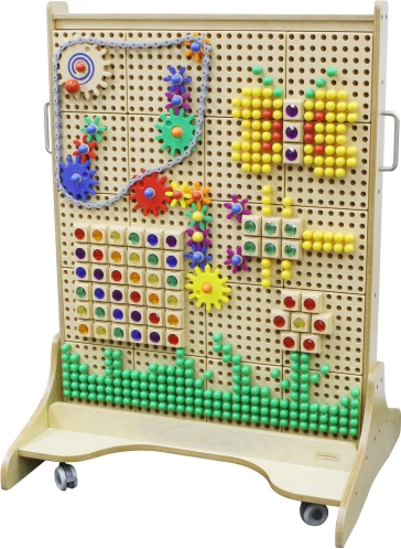 Ta lesena STEM tabla otrokom nudi bogat prostor za ustvarjanje vzorcev, gradnjo krogličnih stez, zobniških prenosov in drugih konstrukcij. Dvostranska zasnova spodbuja skupinsko igro in sodelovanje, medtem ko čvrsta konstrukcija iz kakovostnega lesa zagotavlja dolgo življenjsko dobo.