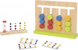 Ta izobraževalna igra otrokom prinaša veselje do odkrivanja in trenira zbranost. Naloga je po izbrani karti prestavljati barvne diske v pravilno zaporedje in to opraviti v času, ki ga meri peščena ura. Lesena izvedba je prijetna na dotik, površina pa je premazana z netoksičnimi barvami.