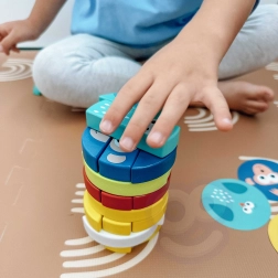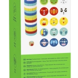 Ta privlačna družinska igra združuje uravnoteženje, razvrščanje barv in spoznavanje živalic. Stolp iz pisanih lesenih koščkov vabi k previdnemu izvlečenju in uri koordinacijo oko–roka, zbranost ter sodelovanje otrok. Idealno za skupno igranje sorojencev in prijateljev.