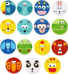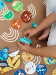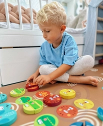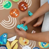Karte in barvna kocka vodijo otroke k prepoznavanju barv in poimenovanju 15 različnih živali. Zabavna pot do razvoja besednega zaklada in logike.