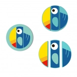 Del kompleta so karte z živalmi in barvna kocka, ki določata, kateri košček naj igralec izvleče. Kakovostna lesena izdelava, gladki robovi ter ekološke, varne barve zagotavljajo prijetno in varno igranje. Igra hkrati podpira učenje barv, štetja in potrpežljivosti.